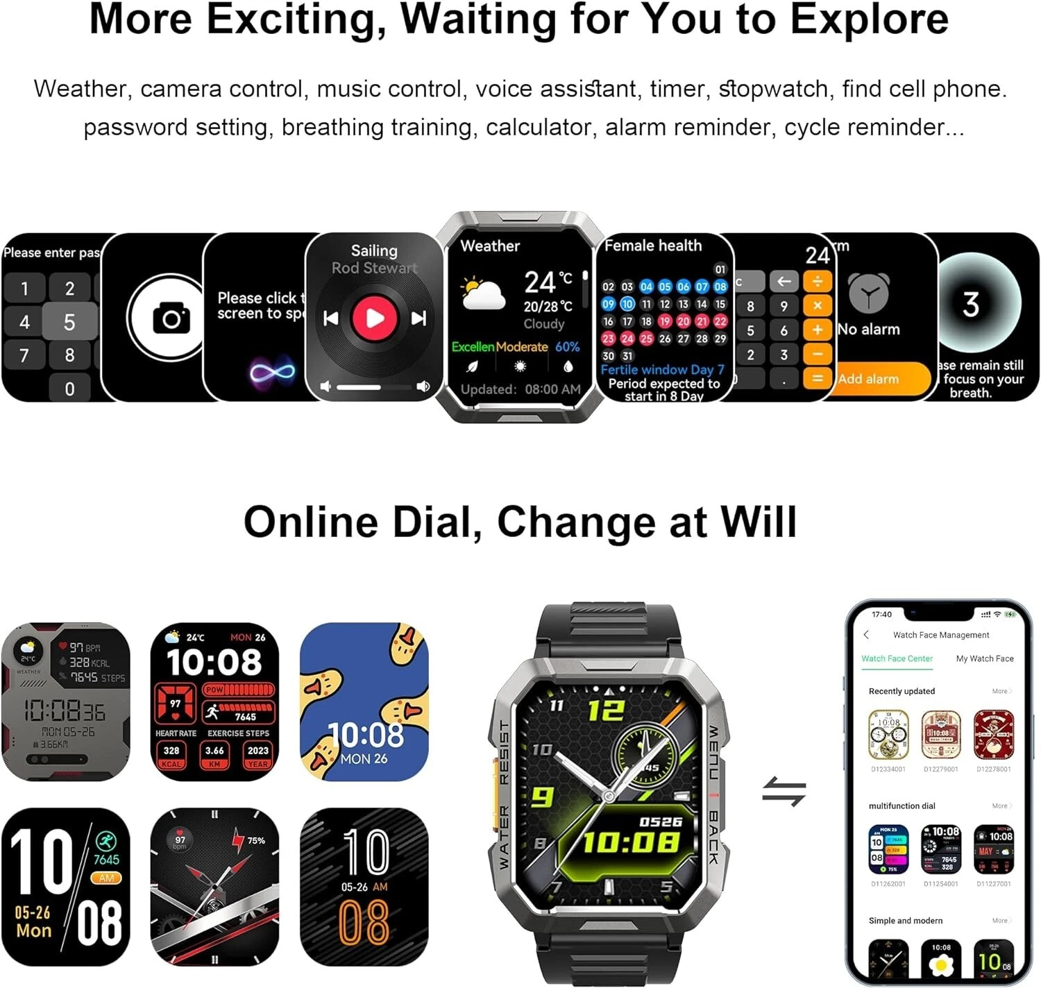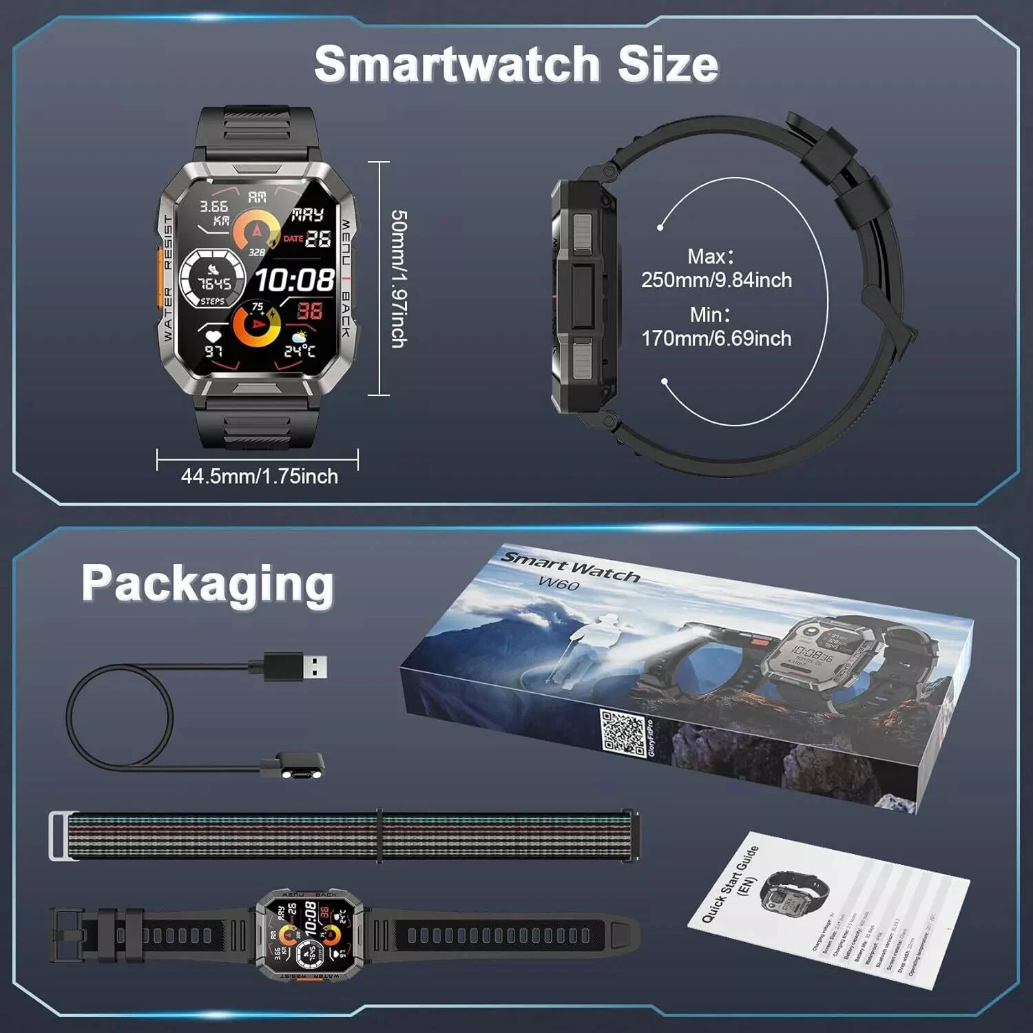 Military Smart Watch Men with Bluetooth Phone Call(Answer/Make Call) Smartwatch
