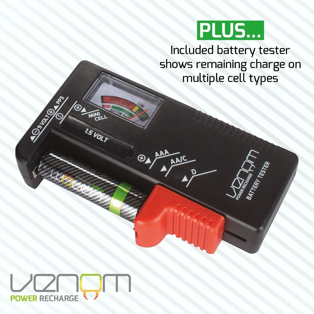 Do you have a lot of batteries lying around in your drawers, cabinets, or closets? Do you struggle to find the right size or type of battery when you need it? Do you waste money and time on buying new batteries without knowing if the old ones still have some charge left? If you answered yes to any of these questions, then you need the Venom battery storage case and organiser complete with battery tester! This amazing product is the ultimate solution for storing and organising your household batteries. It has bespoke storage slots for up to 80 batteries of different sizes, including AA, AAA, C-Cell, D-Cell, 9V and button size. You can easily sort and access your batteries according to your needs.